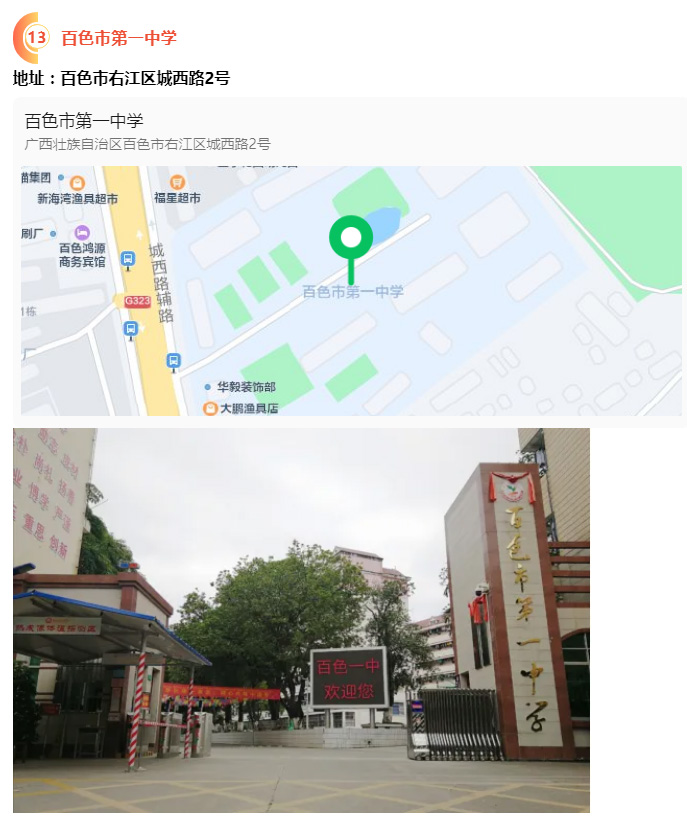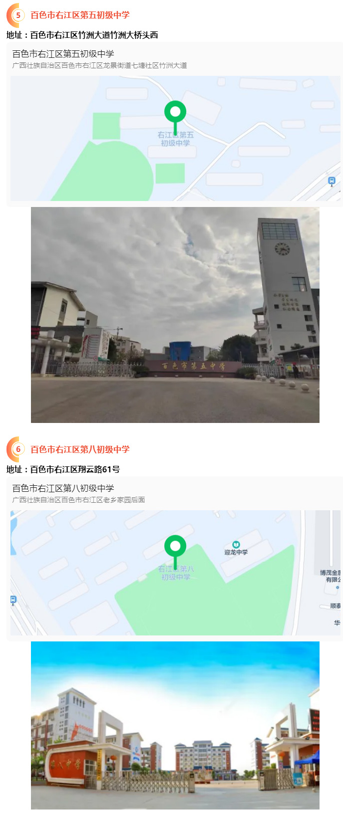 2.請?zhí)崆笆煜た键c地址,做好路線、住宿的安排。本次考試參考人數較多,考點分布分散,建議考生考前實地察看考點,確認考點入口位置,防止走錯考點。請充分考慮考點周邊交通通行情況和停車場地容量,合理安排出行方式,預留充足時間,確保考試當天按時到達。另外,考試期間百色市及各考點學校周邊的住宿比較緊張,請?zhí)崆邦A定。