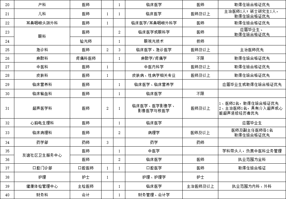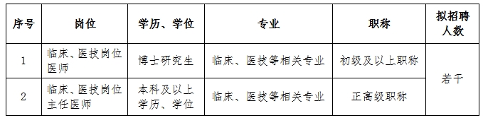 (二)臨床、醫(yī)技、護理等崗位人才(緊缺急需專業(yè):重癥醫(yī)學科、全科醫(yī)學科、康復(fù)醫(yī)學科、感染性疾病科、急診科、兒科、麻醉科、眼科、皮膚科、病理科、心腦電生理科等科室醫(yī)師)