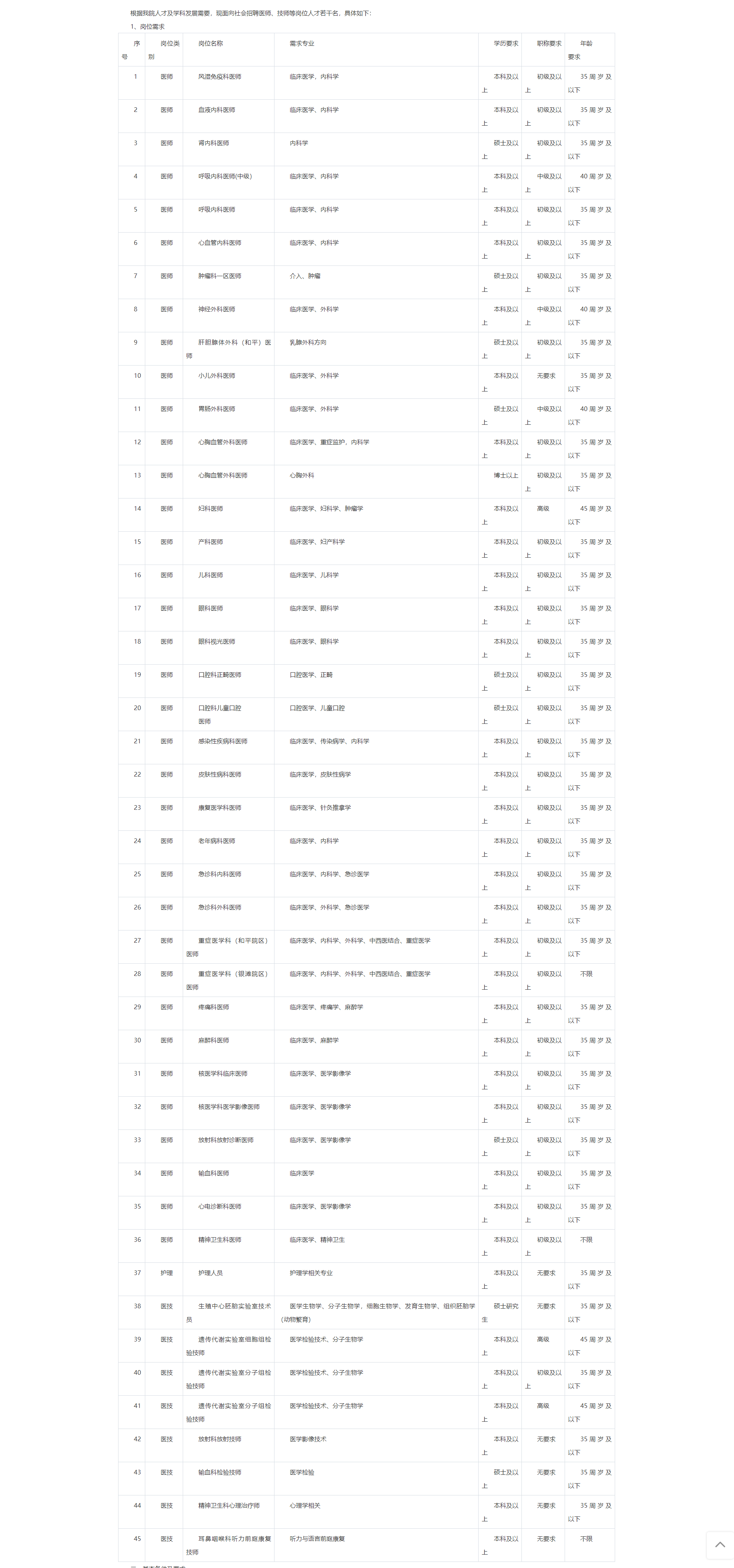 根據(jù)我院人才及學(xué)科發(fā)展需要,現(xiàn)面向社會招聘醫(yī)師、技師等崗位人才若干名,具體如下: