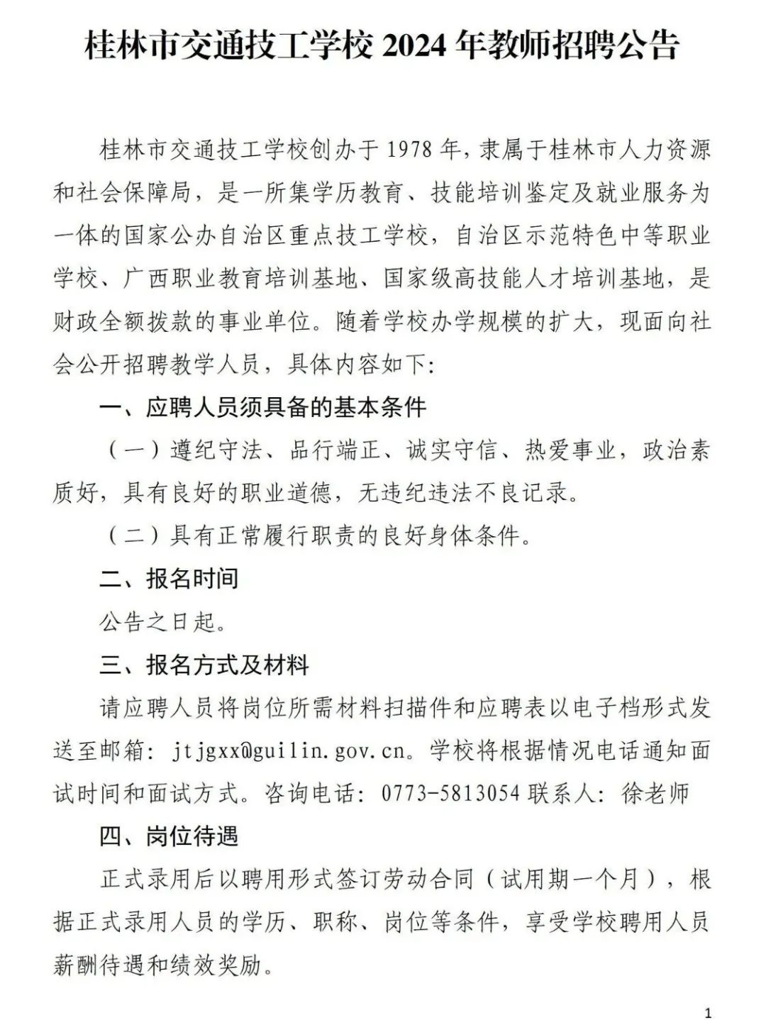 2024年桂林市交通技工學(xué)校教師招聘公告