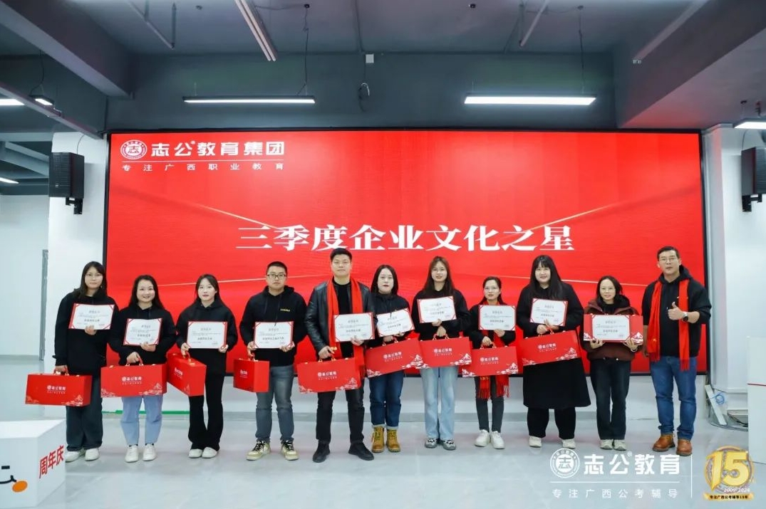 一直以來,志公教育都秉承著“12條企業(yè)文化核心價值觀”,包括客戶原則——以學(xué)員為中心”、“管理原則——人人都是經(jīng)營者”等12項原則,扎根廣西本土公考,全力服務(wù)每一位志公學(xué)員。在董事長李勇的正確領(lǐng)導(dǎo)下,在廣大學(xué)員的支持下,在全體員工的共同努力下,志公教育從無到有,從小到大,不斷夯實發(fā)展基礎(chǔ),贏得了客戶的信賴和品牌形象。全體志公人將堅定目標(biāo)齊奮斗、凝心聚力再出發(fā),為志公高質(zhì)量發(fā)展再立新功。