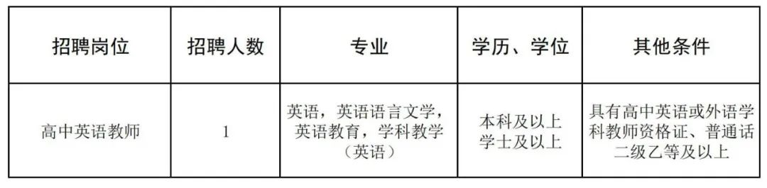 根據(jù)發(fā)展需要,學(xué)校擬招聘高中英語頂崗教師共1人,具體招聘信息如下: