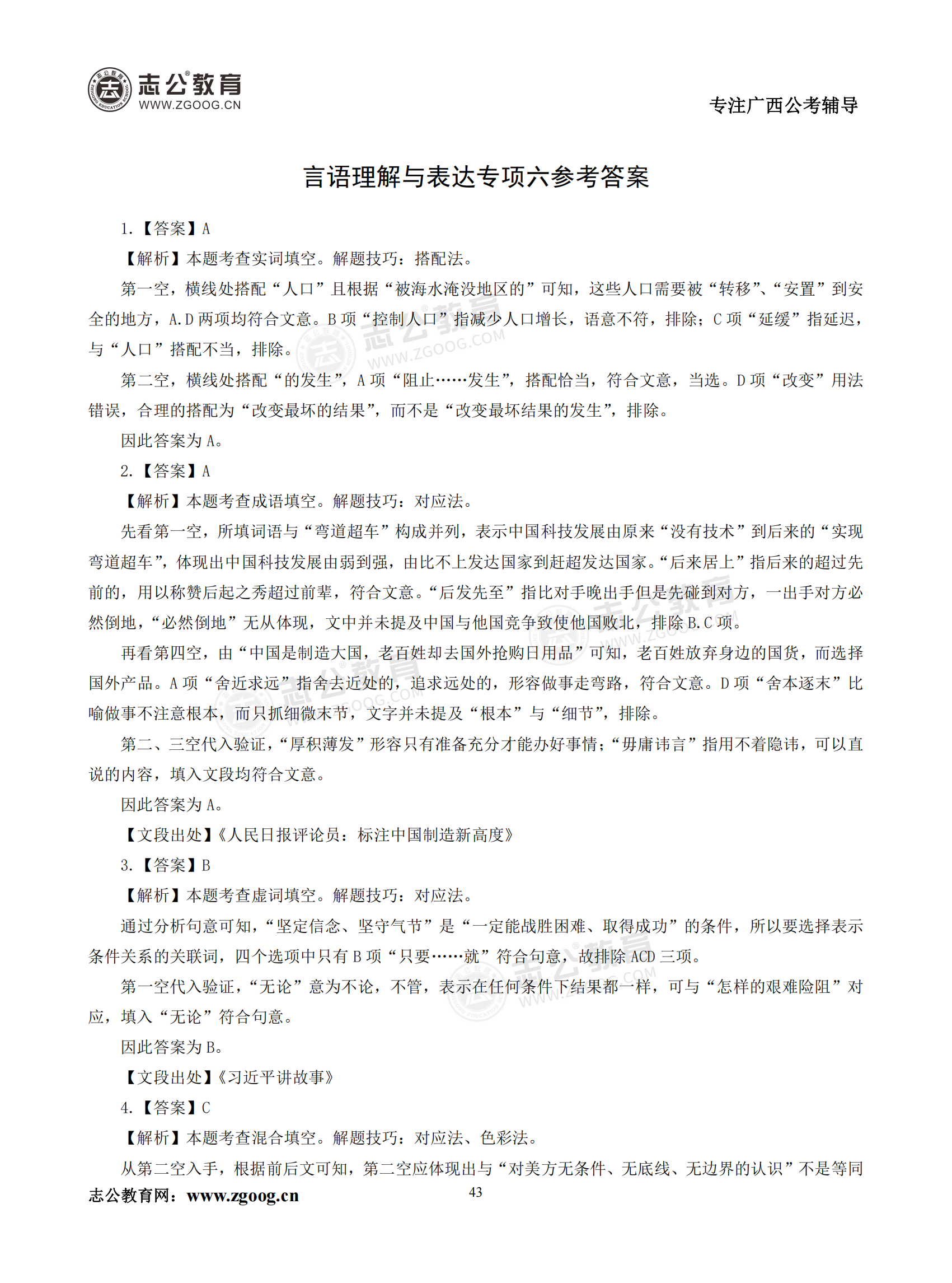 【公考模塊練習(xí)】言語理解題六(答案)