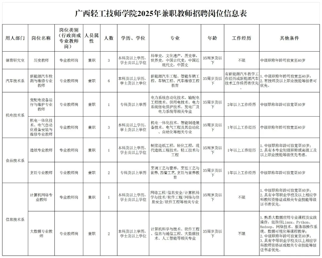 歷史教師,新能源汽車檢測與維修專業(yè)教師,變配電設(shè)備運行與維護專業(yè)教師,機電一體化技術(shù)、電氣自動化設(shè)備安裝與維修專業(yè)教師,造紙專業(yè)教師,烹飪專業(yè)教師,計算機網(wǎng)絡(luò)專業(yè)教師,大數(shù)據(jù)專業(yè)教師。
