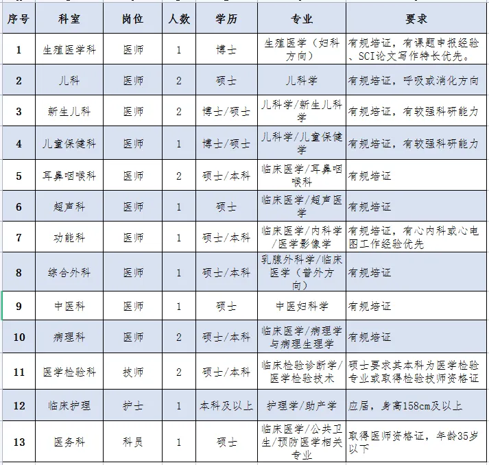 根據(jù)醫(yī)院整體發(fā)展規(guī)劃和學(xué)科建設(shè)需要,柳州市婦幼保健院面向社會公開招聘各學(xué)科相關(guān)專業(yè)技術(shù)人才,具體如下: