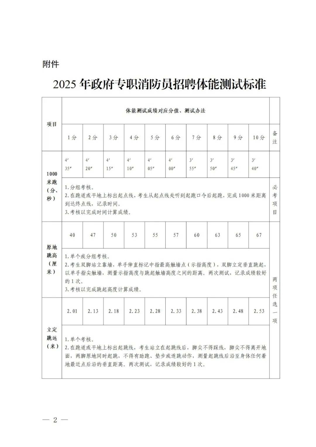測試時間、地點具體以通知為準,應(yīng)聘人員須參加體能測試,并當場簽訂《體能測試健康安全風險承諾書》。體能測試有兩項及兩項以上不得分的視為不合格(標準參照附件)。