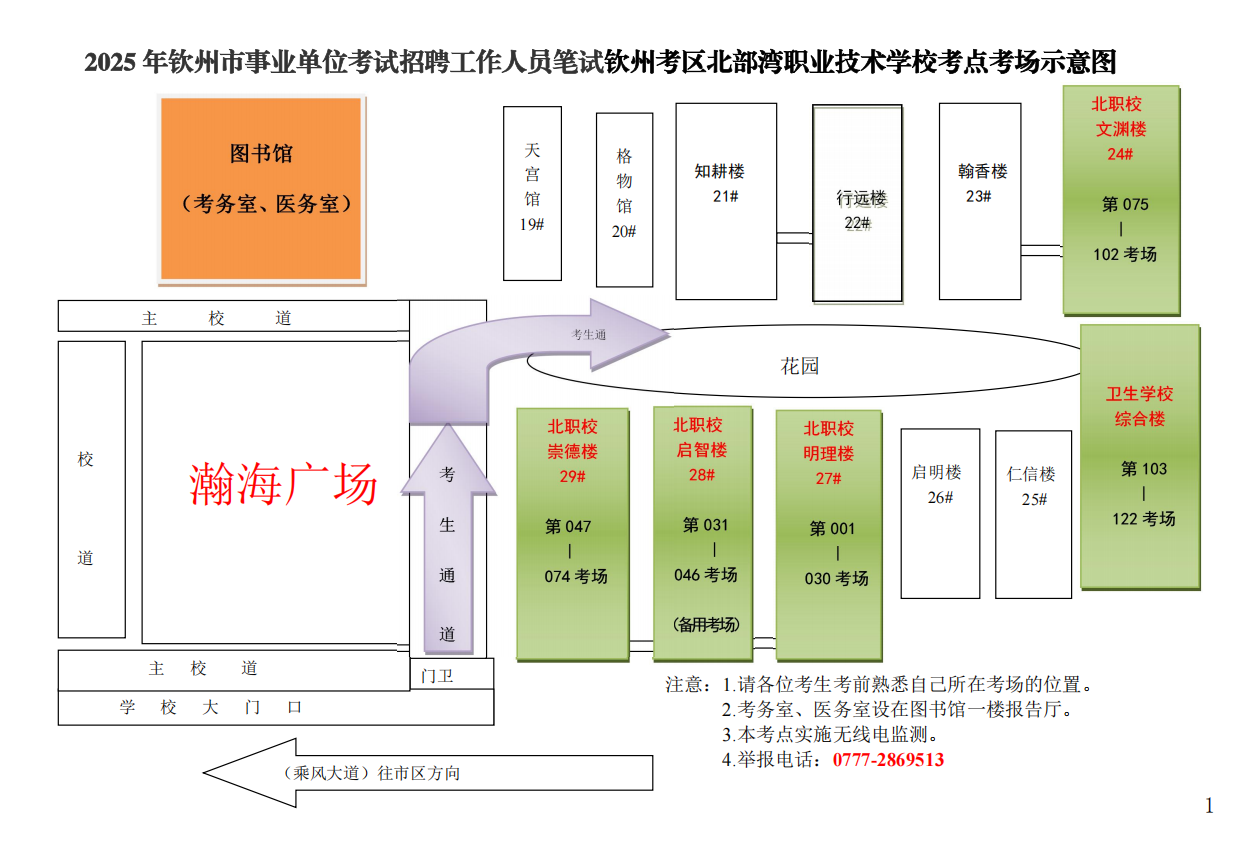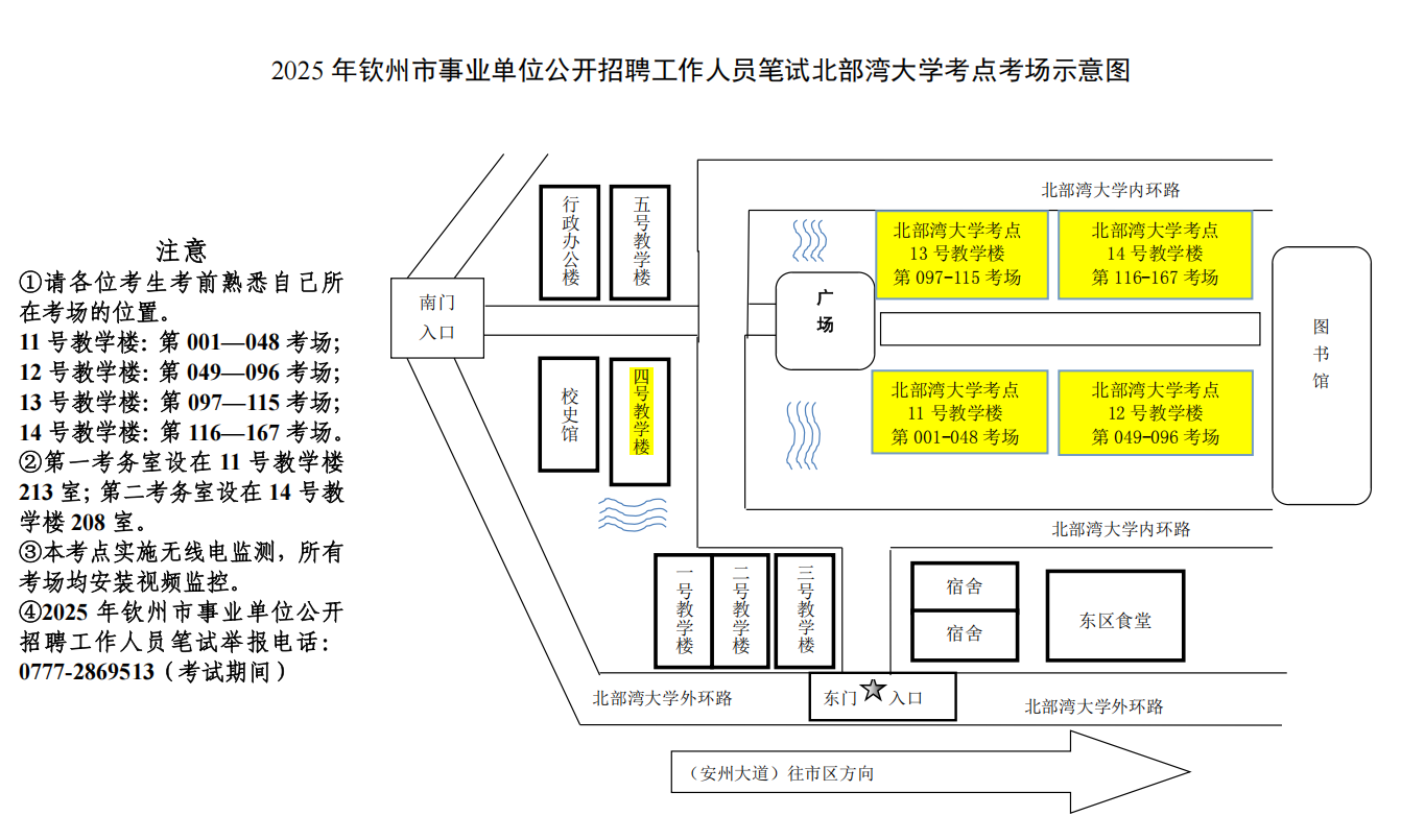 (二)請考生按照本人準考證上的考點學校,提前了解學校所在位置,特別注意不要混淆北部灣大學考點與北部灣職業(yè)技術學??键c。部分考點學校離市區(qū)有一定距離,請關注當天交通情況和天氣情況,充分考慮路途時間和天氣因素影響,提前謀劃出行時間、路線和交通工具,建議提前60分鐘到達考點,以免影響正常入場參加考試。