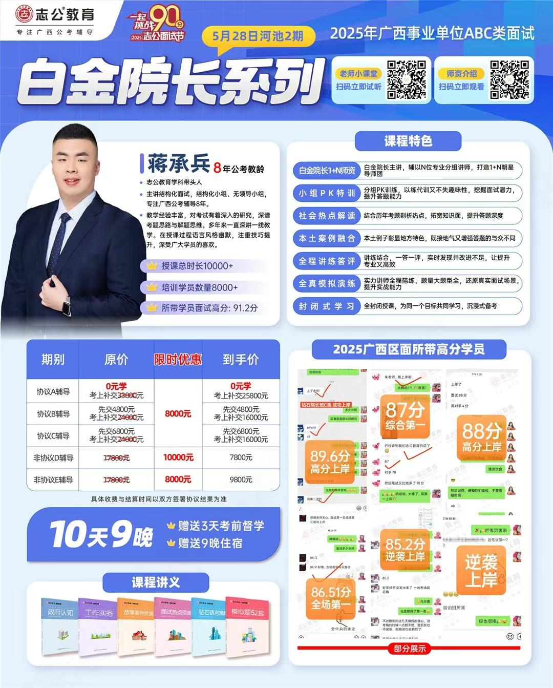 2025年廣西事業(yè)單位ABC類面試白金院長系列課程,匯聚頂尖師資,打造科學(xué)體系,為每一位考生提供高效、精準(zhǔn)、貼心的備考支持。