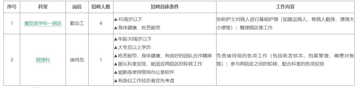 因醫(yī)院工作需要,現(xiàn)面向社會(huì)公開招聘5名普通合同工?,F(xiàn)就有關(guān)事項(xiàng)公告如下: