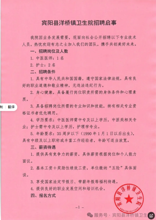 原文標(biāo)題:賓陽縣洋橋鎮(zhèn)衛(wèi)生院招聘啟事
