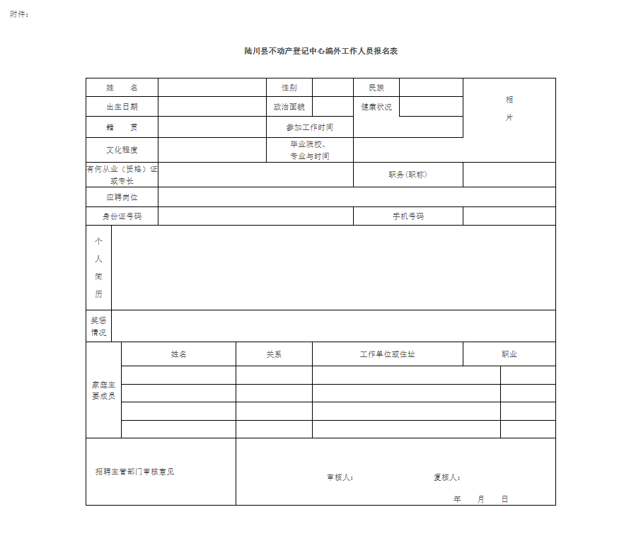附件:《陸川縣不動產(chǎn)登記中心編外工作人員報名表》