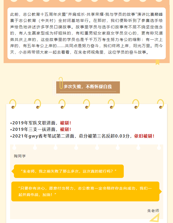 他成功上岸后,滿懷感激地給我們志公教育全體老師送來了錦旗。作為他的報(bào)班老師,我很欣慰看到他的努力得到了回報(bào)。他的勵志奮斗上岸故事也讓我深受鼓舞,讓我深刻認(rèn)識到,只要有堅(jiān)定的目標(biāo),持之以恒的努力,善于借鑒他人成功的經(jīng)驗(yàn),我們也能在工作中取得更多的成就與進(jìn)步!幫助更多學(xué)員實(shí)現(xiàn)他們的夢想!向?qū)W員學(xué)習(xí),也向所有致力于努力備考奮斗的學(xué)員們致敬!