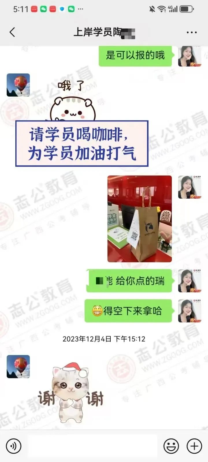 為他安排一杯暖心的咖啡,他在第二天也回請了我“帶有西大文化底蘊(yùn)的瑞幸”。期間,還主動給我轉(zhuǎn)介紹了 3 個同學(xué)來報(bào)班!在這條逐夢的道路上,我們不僅僅是師生,更是相互信任、相互支持的知心朋友。