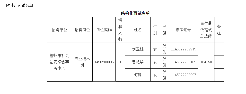 根據(jù)《2025年度柳州市事業(yè)單位公開考試招聘工作人員公告》、《關(guān)于印發(fā)〈廣西壯族自治區(qū)事業(yè)單位公開招聘工作人員面試工作規(guī)則(試行)〉的通知》(桂人社發(fā)〔2012〕79號)的規(guī)定,中共柳州市委政法委員會擬組織所屬年事業(yè)單位公招面試,現(xiàn)將相關(guān)事宜公告如下: