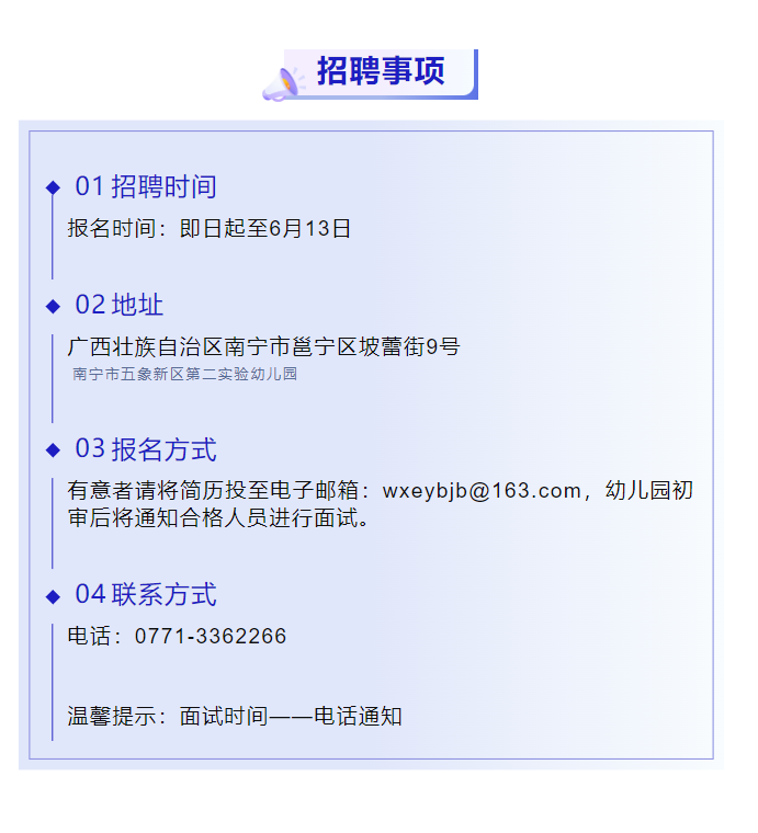原文標(biāo)題:南寧市五象新區(qū)第二實驗幼兒園招聘公告