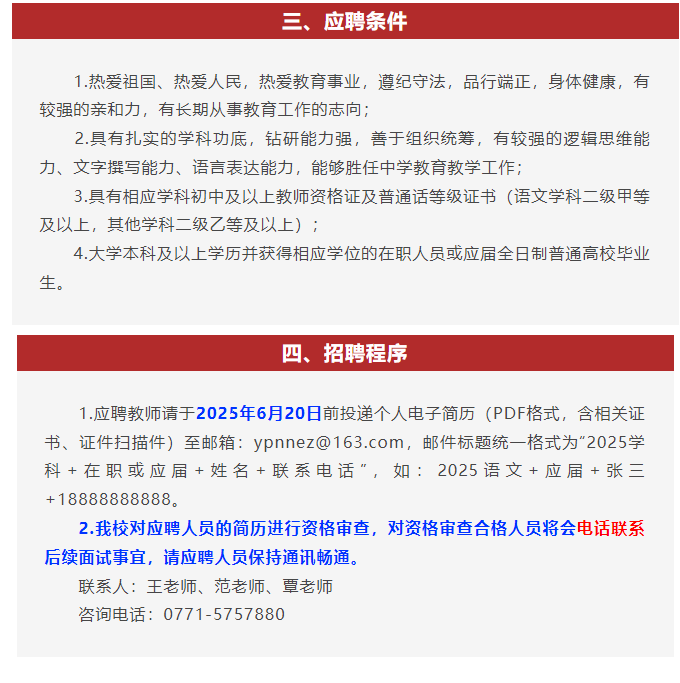 南寧市第二中學(xué)新民校區(qū)2025年臨聘教師招聘公告