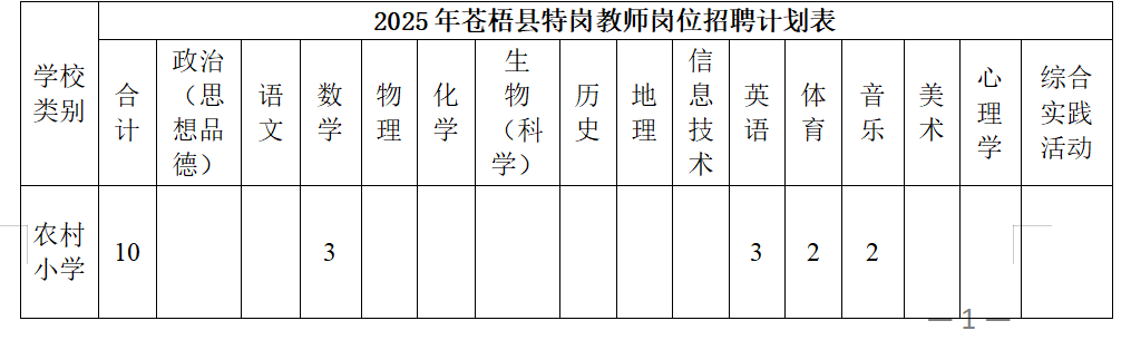根據(jù)自治區(qū)教育廳、財政廳、人社廳《關(guān)于做好2025年特崗教師招聘工作的通知》(桂教特崗〔2025〕1號)的有關(guān)規(guī)定,現(xiàn)將我縣特崗教師招聘有關(guān)事項公告如下: