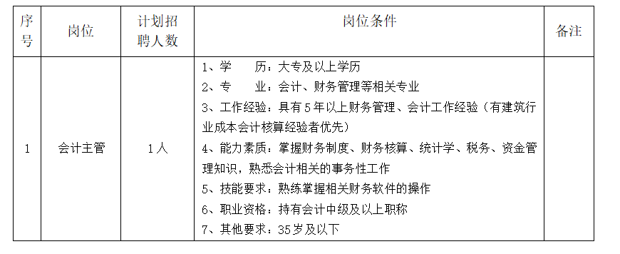 根據(jù)我公司業(yè)務(wù)發(fā)展需要,現(xiàn)面向社會公開招聘會計(jì)主管1名,相關(guān)事宜如下: