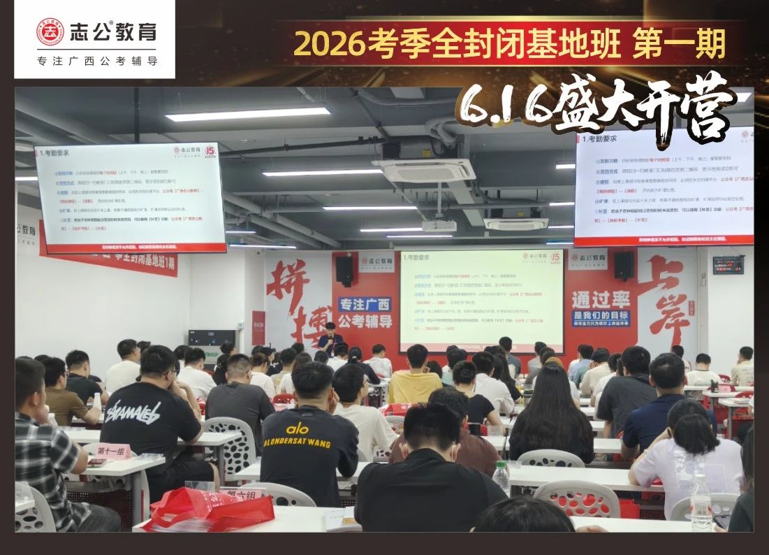 最后,要進行的是摸底考試,志公教育26考季全封閉基地班第1期確實火爆,但是要知道廣西公考每年競爭對手更多人,只有通過考試才能知道自己在這么多學(xué)員中的水平情況,入營時的最初水平,更能知道自己在接下來的學(xué)習(xí)中是否有進步!