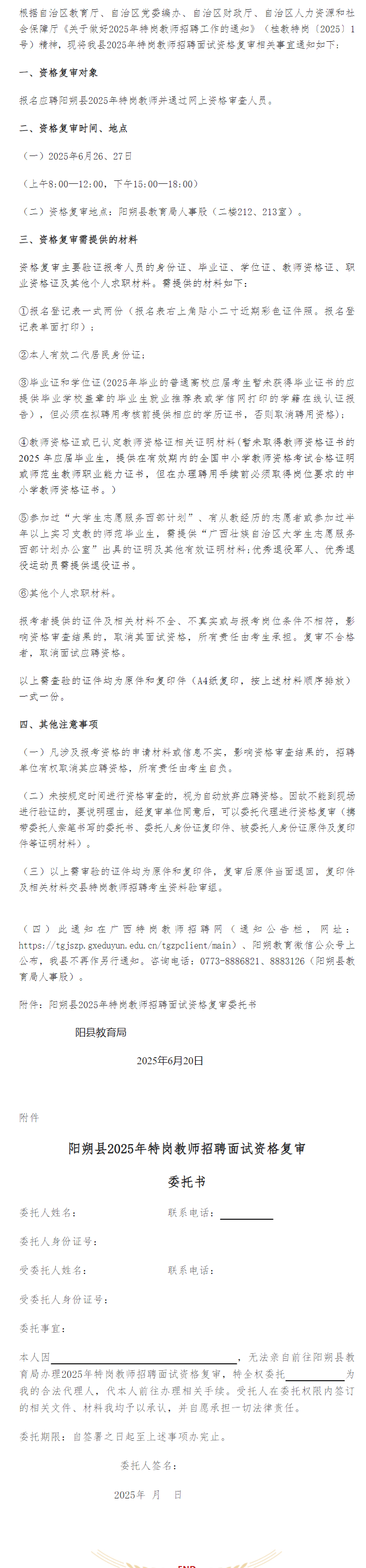 原文標題:陽朔縣2025年特崗教師招聘面試資格復審通知