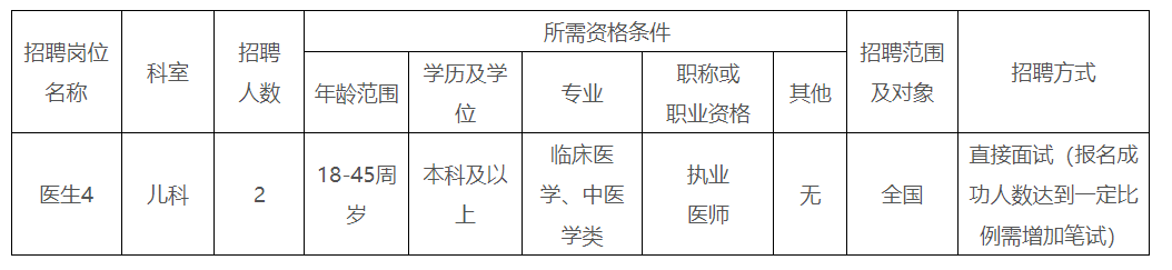 根據(jù)醫(yī)院發(fā)展需要,我院決定面向社會招聘兒科醫(yī)師2名,現(xiàn)將有關(guān)事項公告如下:
