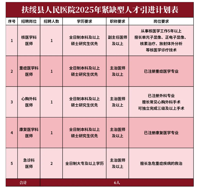 扶綏縣人民醫(yī)院2025年人才招聘計(jì)劃