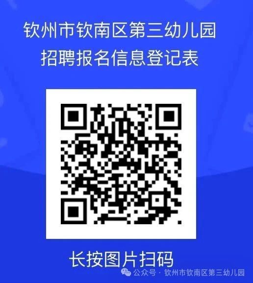 2.應聘者把個人簡歷、身份證、學歷證、教師資格證、健康證的電子材料發(fā)到郵箱1960473057@qq.com。郵件以“應聘崗位+姓名+聯(lián)系電話”命名(如:應聘教學老師+小紅+1234567890)。并申請加入“欽南三幼教師招聘” QQ群(1053133401)。