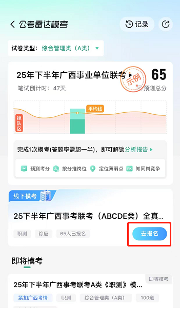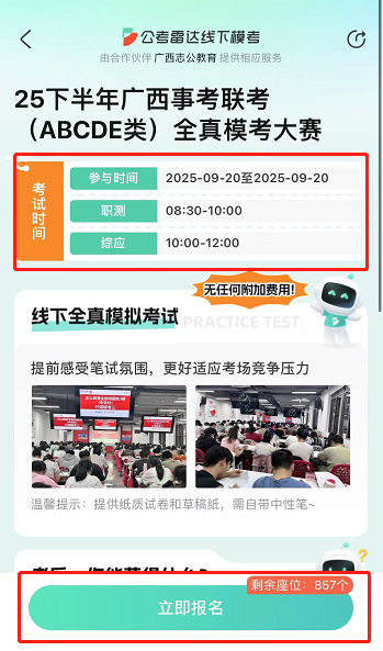 1??全zhen模擬高度還原:嚴(yán)格按照廣西事業(yè)單位聯(lián)考流程和時間進(jìn)行,試卷對標(biāo)zhen題,考場安排也高度還原,給你沉浸式考試體驗(yàn)。
