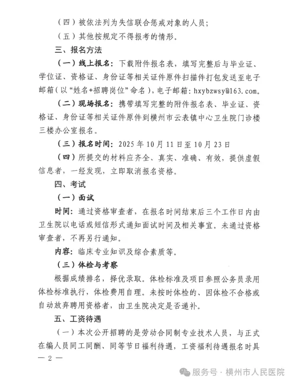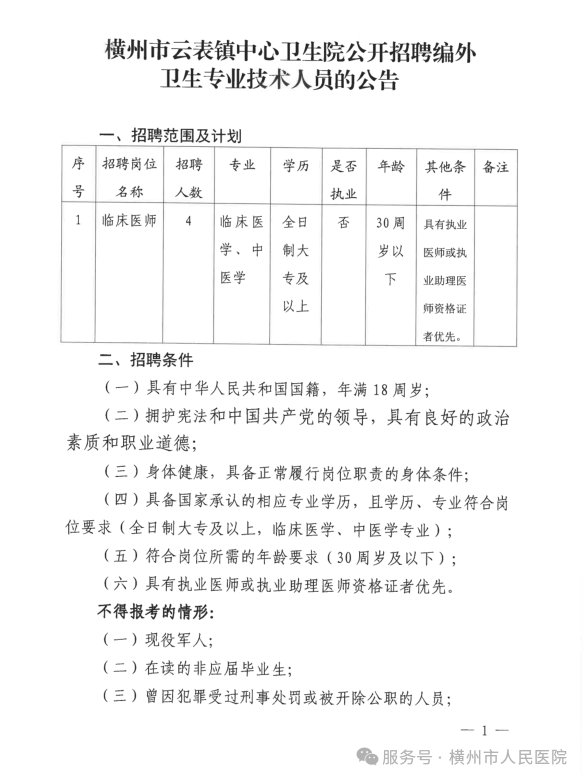 2025年橫州市云表鎮(zhèn)中心衛(wèi)生院公開(kāi)招聘編外衛(wèi)生專(zhuān)業(yè)技術(shù)人員的公告