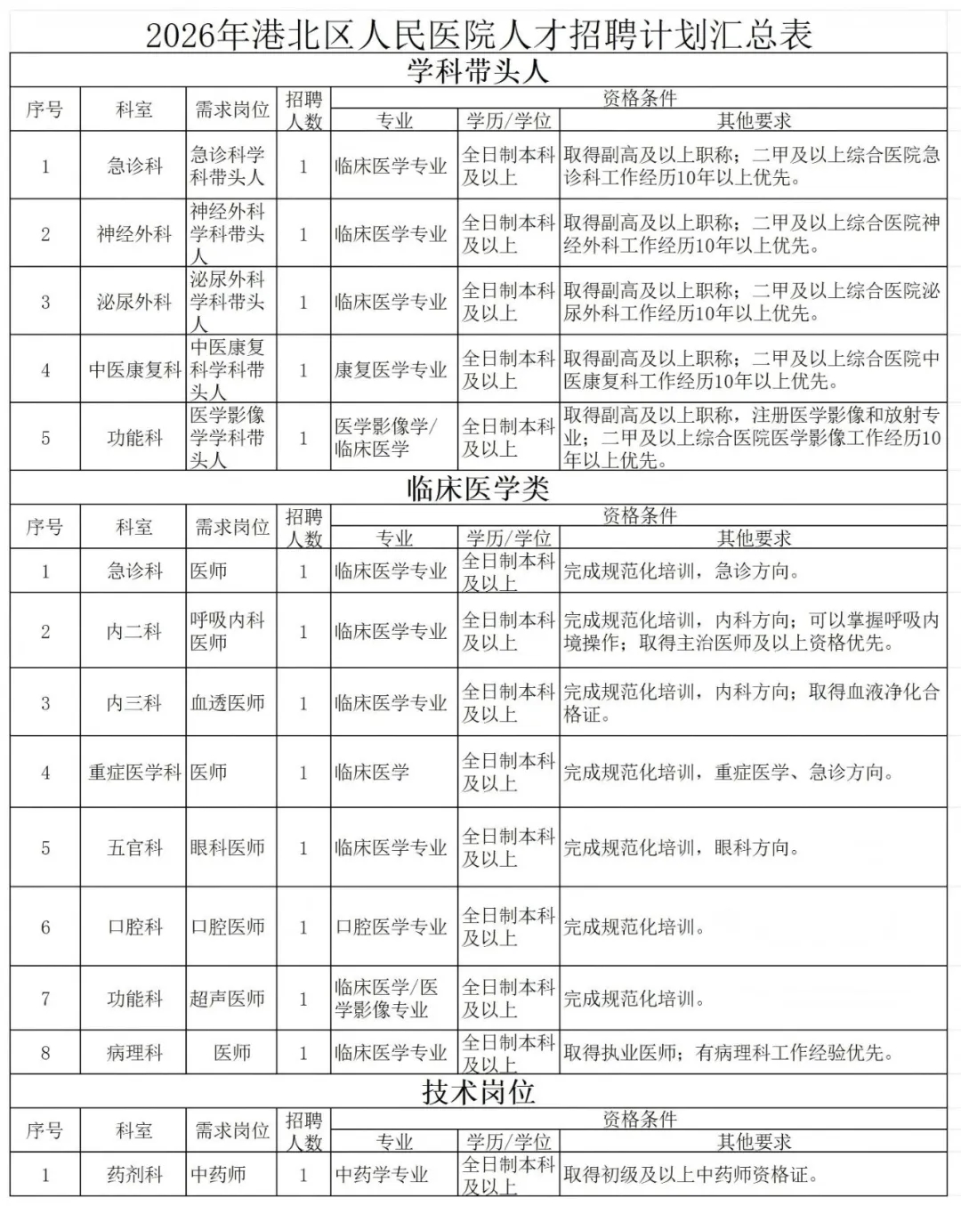 3.醫(yī)技崗位、其他崗位: