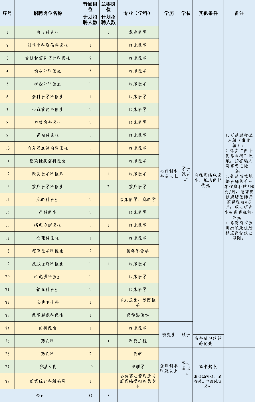 2.具有規(guī)培合格證的醫(yī)生依照國衛(wèi)辦科教發(fā)〔2021〕18號文件,落實“兩個同等對待”政策,即“面向社會招收的普通高校應(yīng)屆畢業(yè)生培訓(xùn)對象培訓(xùn)合格當(dāng)年在醫(yī)療衛(wèi)生機(jī)構(gòu)就業(yè)的,在招聘、派遣、落戶等方面,按當(dāng)年應(yīng)屆畢業(yè)生同等對待。對經(jīng)住培合格的本科學(xué)歷臨床醫(yī)師,在人員招聘、職稱晉升、崗位聘用、薪酬待遇等方面,與臨床醫(yī)學(xué)、中醫(yī)專業(yè)學(xué)位碩士研究生同等對待”。普通崗位規(guī)培醫(yī)師給予一年住房補(bǔ)貼500元/月,急需崗位規(guī)培醫(yī)師安家費稅前4萬元,急需崗位醫(yī)師必須注冊相應(yīng)崗位執(zhí)業(yè)范圍。