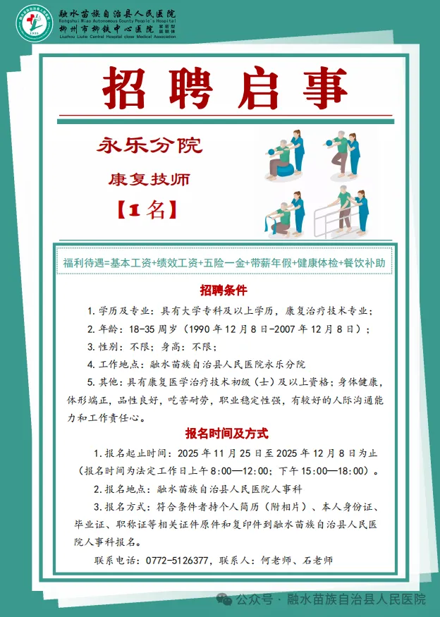 2025年融水苗族自治縣人民醫(yī)院緊密型醫(yī)共體白云中心衛(wèi)生院、永樂(lè)鎮(zhèn)衛(wèi)生院招聘