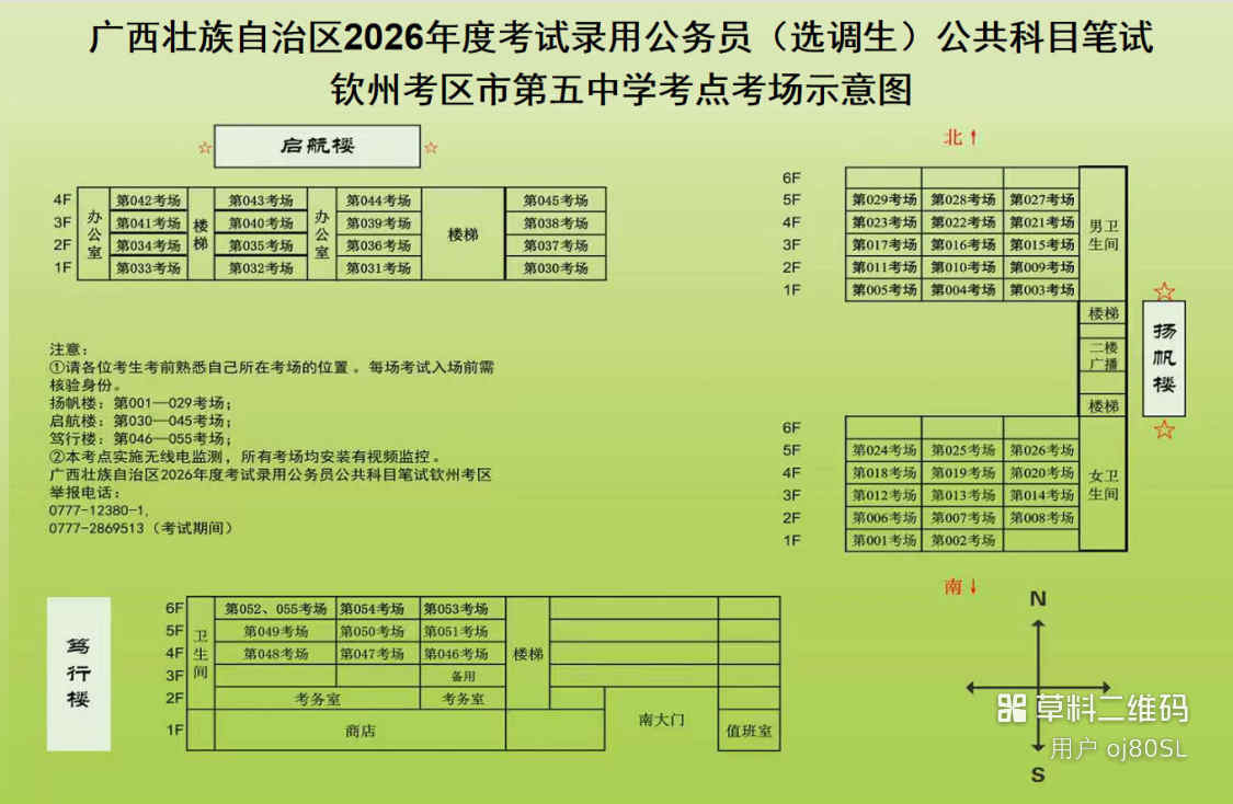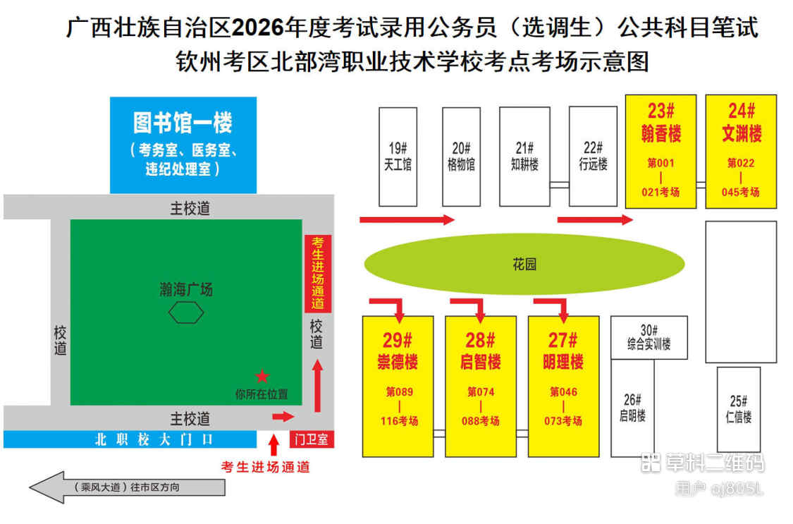 欽州考區(qū)共設(shè)三個(gè)考點(diǎn),分別為北部灣大學(xué)考點(diǎn)、北部灣職業(yè)技術(shù)學(xué)??键c(diǎn)、欽州市第五中學(xué)考點(diǎn)。(考點(diǎn)地址和具體考場安排請掃附后的二維碼查看)